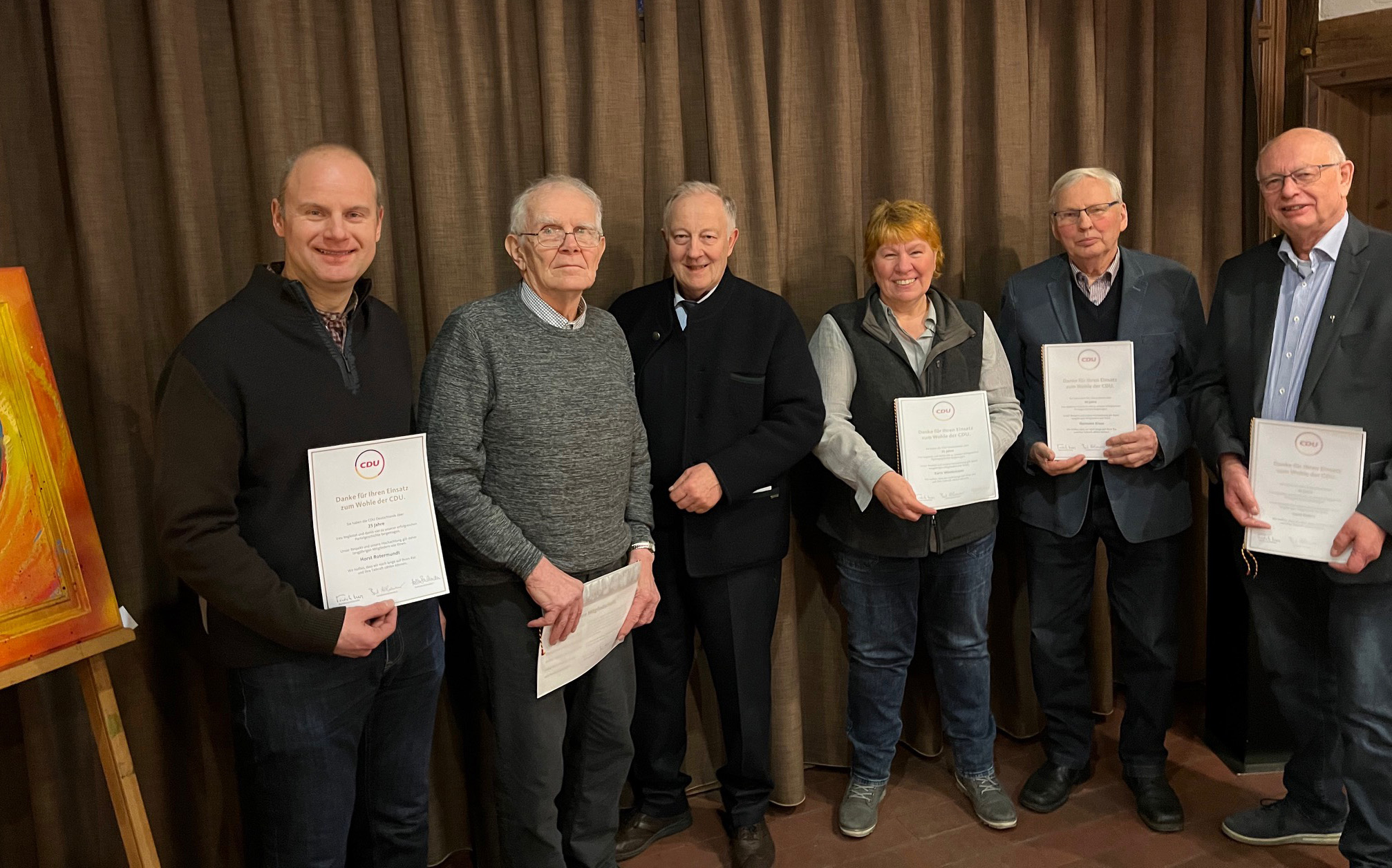 Für 40-jährige CDU-Mitgliedschaft geehrte wurden Hermann Kruse und Cord Ehlers. Beide kommen aus Holtum-Geest, ebenso wie der für 25-jährige Mitgliedschaft geehrte Horst Rotermundt. „Alle drei haben als Selbstständige Betriebe aufgebaut, die am Markt erfolgreich sind und zusätzlich haben sie sich in vielfältiger Weise für das Allgemeinwohl eingesetzt, ob als langjähriger Schützenvereinsvorsitzender (Hermann Kruse), als Ortsbrandmeister (Horst Rotermundt) oder als Impulsgeber im technologischen und im kirchlichen Bereich (Cord Ehlers).“