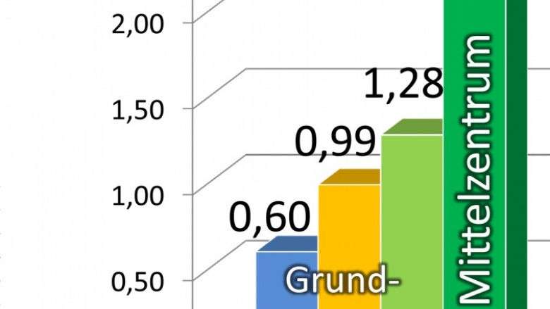 Während andere Grundzentren wie Thedinghausen und Langwedel ihren Einwohnern 0,99 qm bzw. 1,28 qm Verkaufsfläche pro Einwohner bieten, sind es in Kirchlinteln nur 0,60 qm pro Einwohner. Im Mittelzentrum Verden dagegen sogar 2,56 qm.